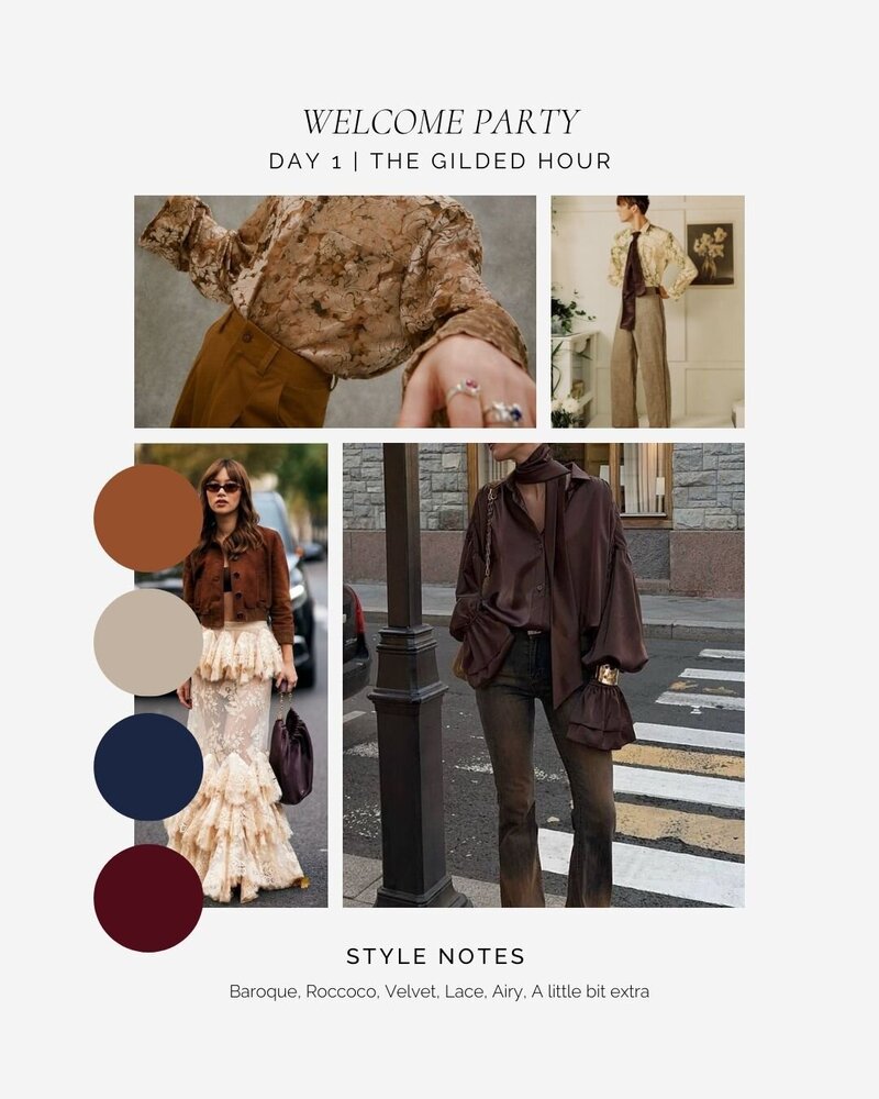 Our official attire guide will be posted on this page and emailed once it’s available. These are simply style suggestions - please dress in a way that feels aligned with you. Whether elevated or effortless, the most important thing is to show up as yourself.